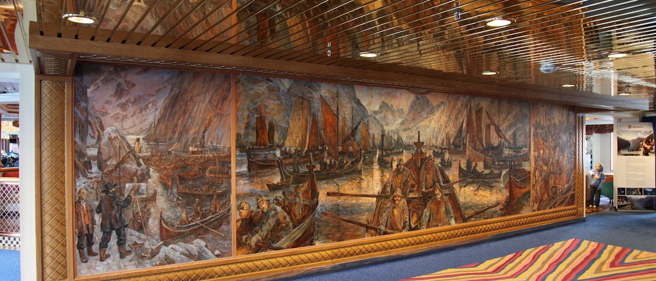 I den maritima interiören har norska konstnärer skapat en unik och uttrycksfull miljö.
