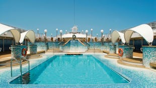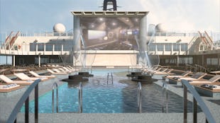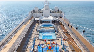 På övre däck väntar flera sköna pooler och jacuzzis, gymmet samt spaavdelningen.