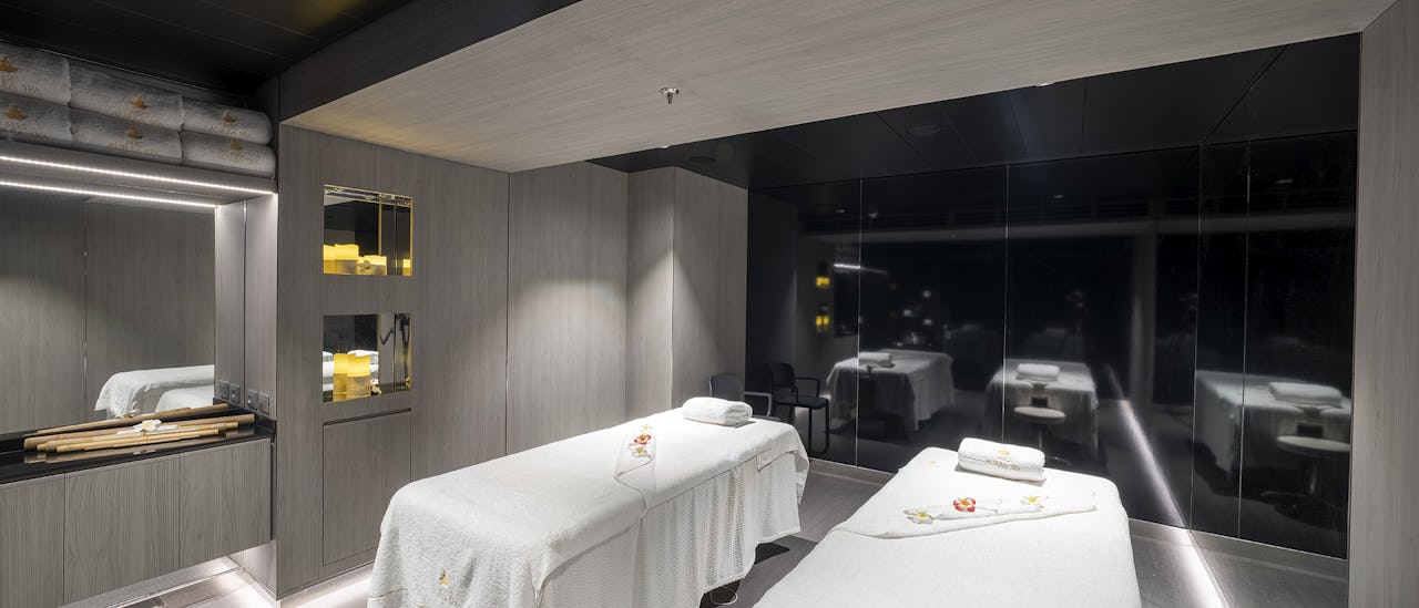 Entrén till Spa-avdelningen där du kan få en massage utomhus på 360° Waterfront Boardwalk
